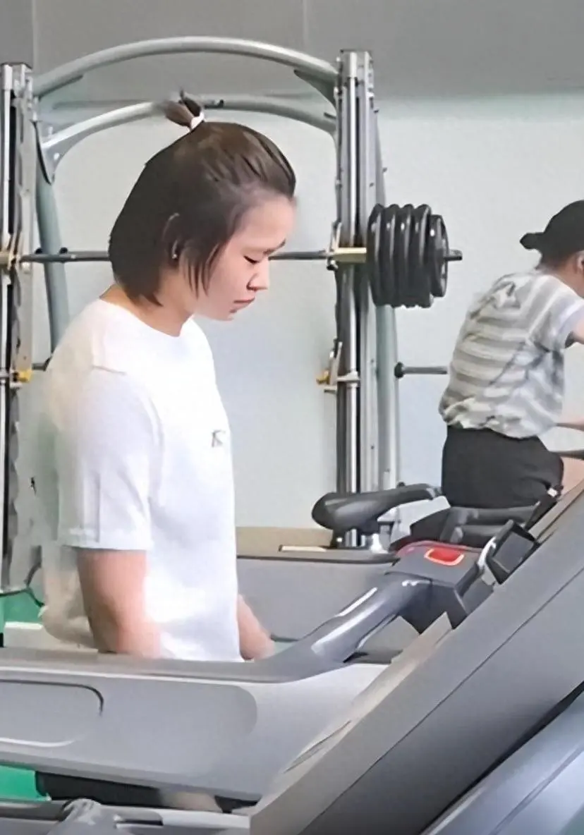 全红婵穿着极其朴素的训练服,正在跑步机上做着基础有氧训练。